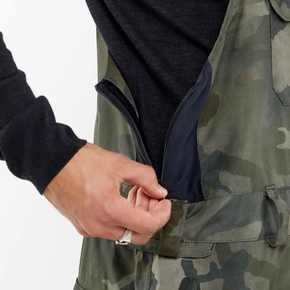 กางเกงสกีบิบบ์บุขนโพลาร์เทคกันน้ำ ระบายอากาศได้ดี สำหรับผู้ชายและผู้หญิง ลายพราง ปรับขนาดได้ กันลม