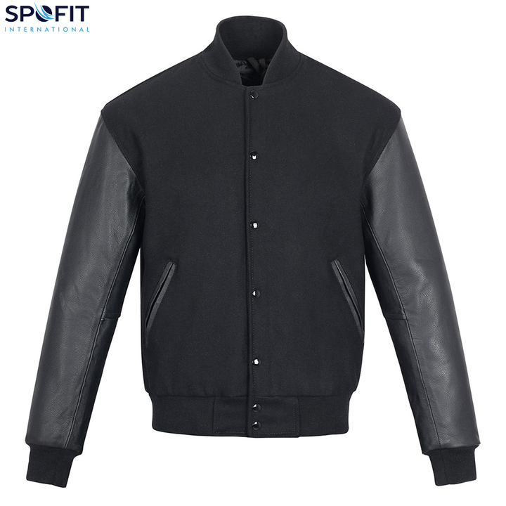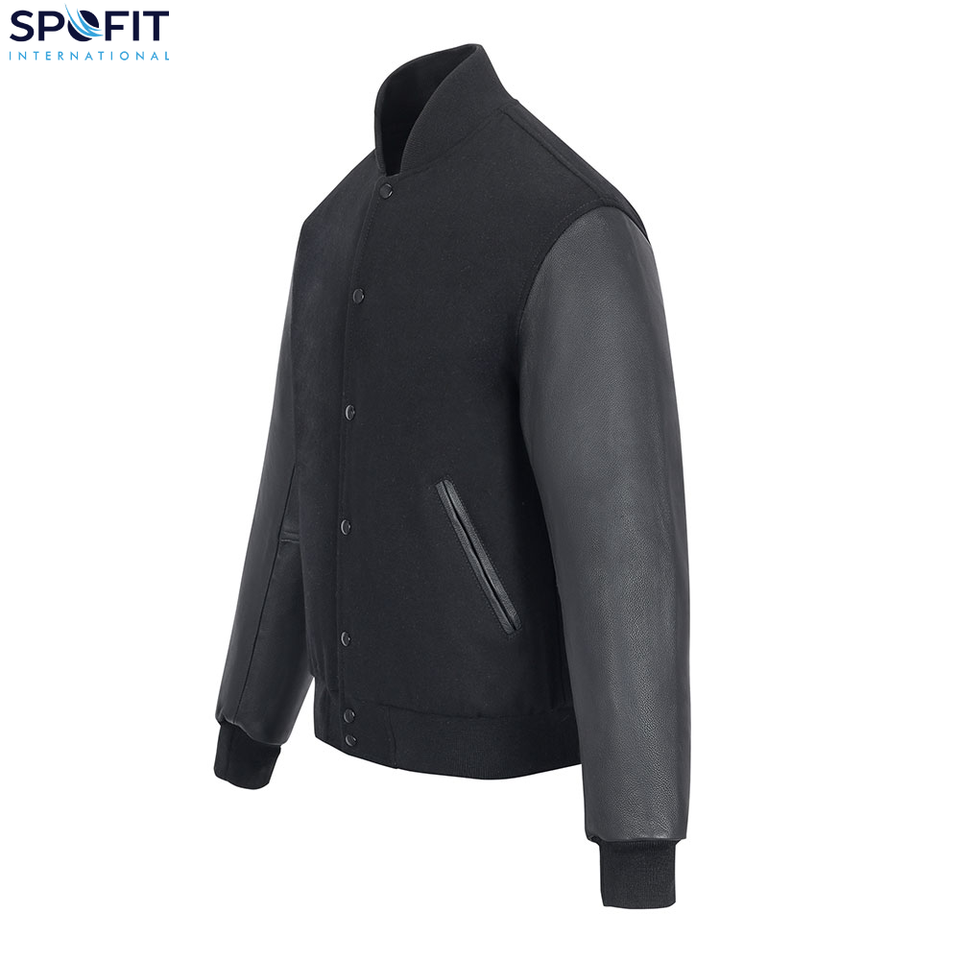 แจ็คเก็ตวาร์ซิตี้ผ้าขนสัตว์สำหรับผู้ชาย ปักลายปักแบบกำหนดเอง แขนหนังแท้ สไตล์สตรีทแวร์ ขายส่งสำหรับผู้ชาย