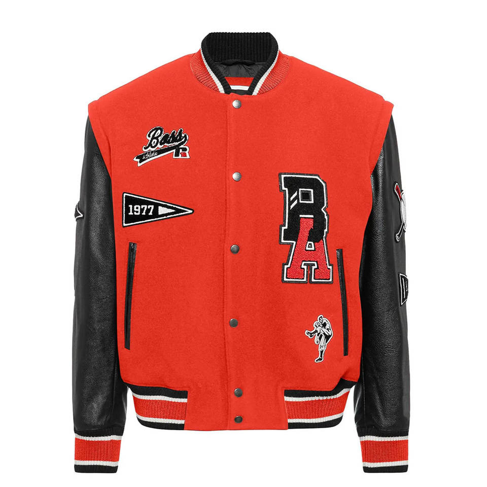 เสื้อแจ็กเก็ตแขนยาวสำหรับผู้ชายฤดูหนาวผ้าแคนวาสแขนยาวปักโลโก้ได้ตามต้องการสไตล์เบสบอลผ้า