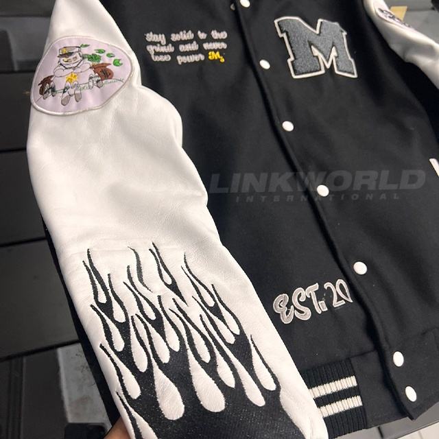 เสื้อแจ็กเก็ตขนสัตว์คุณภาพสูงสำหรับผู้ชายแขนเสื้อหนังแท้ปักโลโก้ได้ตามต้องการสำหรับฤดูหนาว