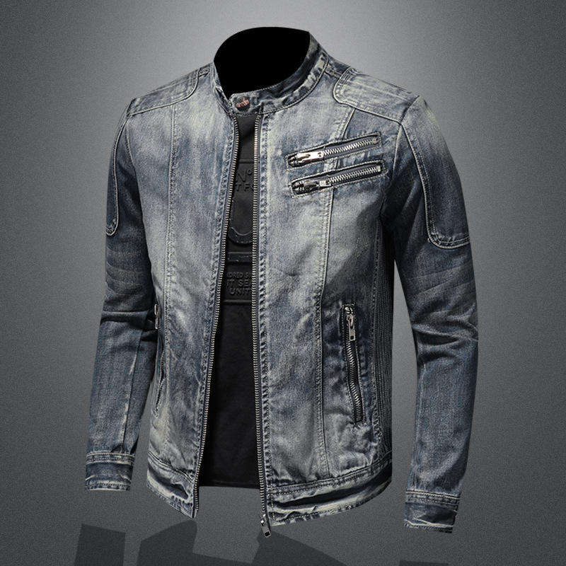 แจ็กเก็ตผ้ายีนส์กระดุมยาวสำหรับผู้ชายเสื้อแจ็คเก็ตผ้าเดนิมแบบกระดุมหนาเคลือบ100% สำหรับใส่ทำงาน