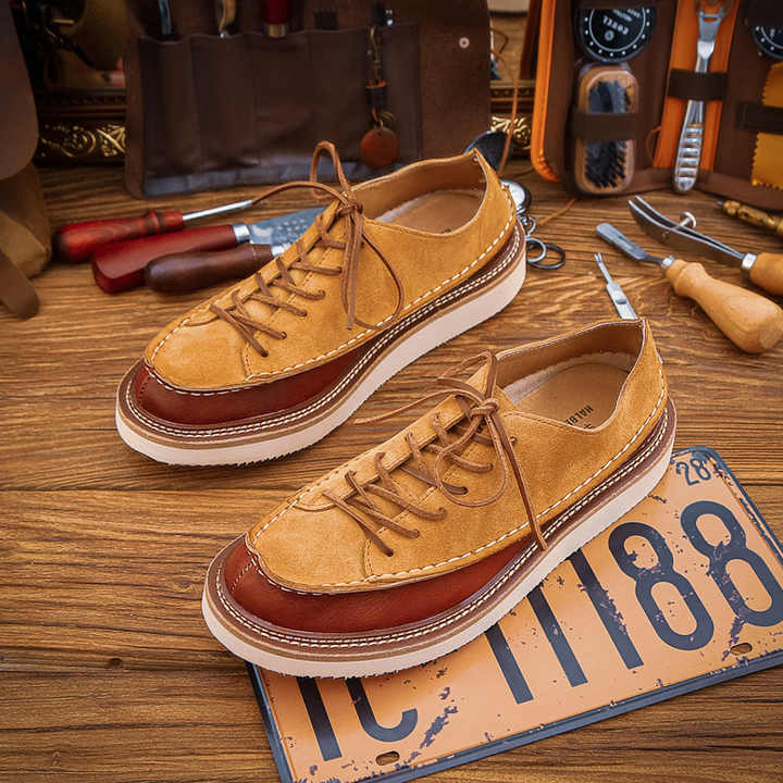 รองเท้าทำงานผู้ชาย แฟชั่น หัวกลม หนังแท้ สำหรับใส่ทำงาน ทันสมัย สไตล์อังกฤษ ย้อนยุค หุ้มข้อต่ำ เพิ่มความสูง สำหรับฤดูใบไม้ร่วง