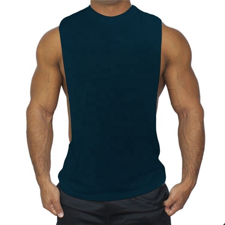 เสื้อกล้ามออกกำลังกายแขนกุดสำหรับผู้ชายผ้าคอตตอน/โพลีเอสเตอร์ผ้าแห้งเร็วระบายอากาศได้ดีปรับแต่งโลโก้ได้