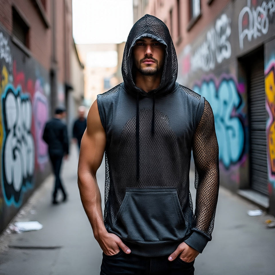 Product name:Gym Sleeveless Sheer Mesh Hoodie