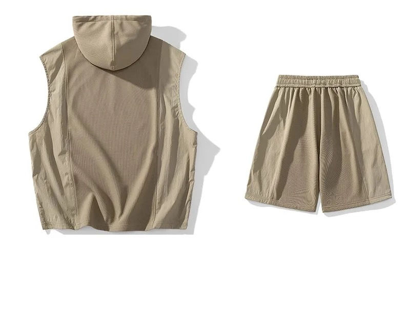 ชุดออกกำลังกายผู้ชาย เสื้อกล้ามมีฮู้ดผ้าสแปนเด็กซ์/โพลีเอสเตอร์เนื้อนุ่ม สวมใส่สบาย กางเกงขาสั้นลำลอง เสื้อโชว์กล้ามเนื้อ ระบายอากาศ แห้งเร็ว