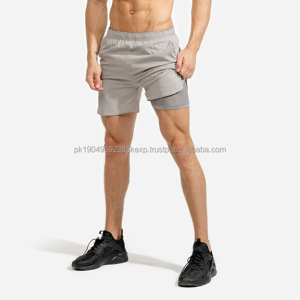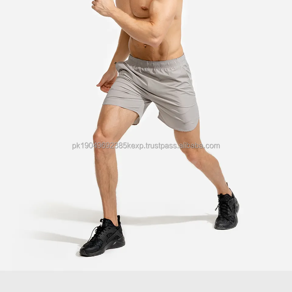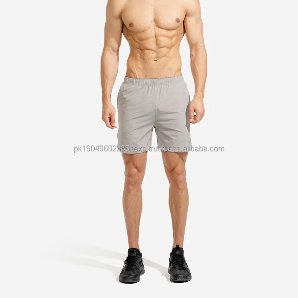กางเกงขาสั้นออกกำลังกายของผู้ชายมีแถบกันรอยยับสำหรับใส่ในฤดูร้อนเสื้อผ้ากีฬาใช้ในโรงยิมลาย Pockets-6XL สีพื้น
