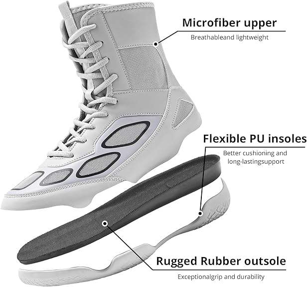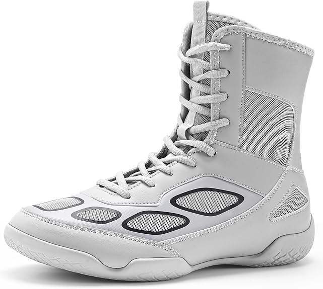 รองเท้าผ้าใบหุ้มข้อสูงสำหรับผู้ชาย สำหรับมวยปล้ำ มวยสากล วัสดุ PU ระบายอากาศได้ดี น้ำหนักเบา กันลื่น เหมาะสำหรับออกกำลังกาย