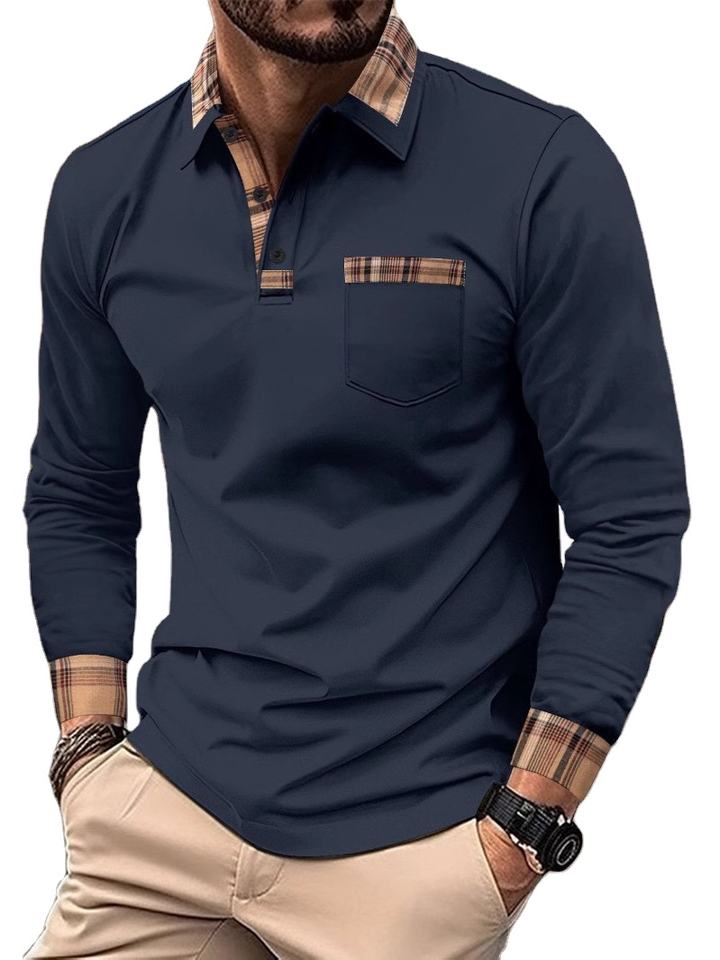เสื้อโปโลแขนยาวผู้ชายไซส์ XL รุ่นใหม่สำหรับฤดูร้อน สไตล์ลำลอง ผ้าถักเนื้อแน่น ลายเสือดาว ดีไซน์กระดุม