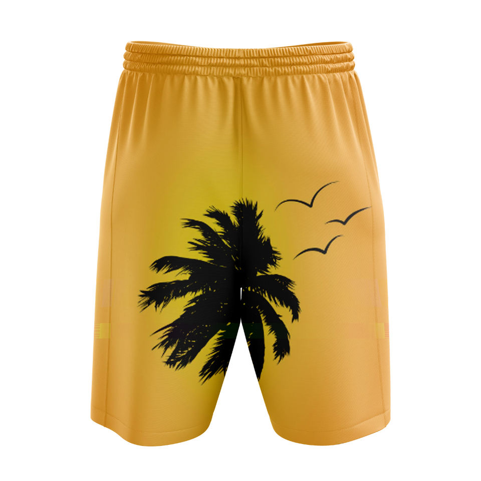 กางเกงชายหาดพิมพ์ลายต้นปาล์มสีเหลืองสำหรับผู้ชาย แห้งเร็ว ใส่เล่นน้ำช่วงฤดูร้อน น้ำหนักเบา เหมาะสำหรับวันหยุด ท่องเที่ยวชายหาดและสระว่ายน้ำ คุณภาพเยี่ยม
