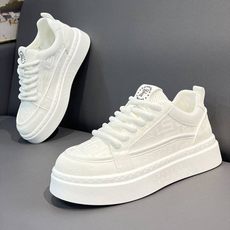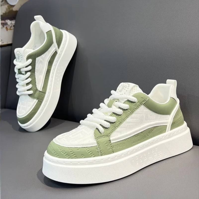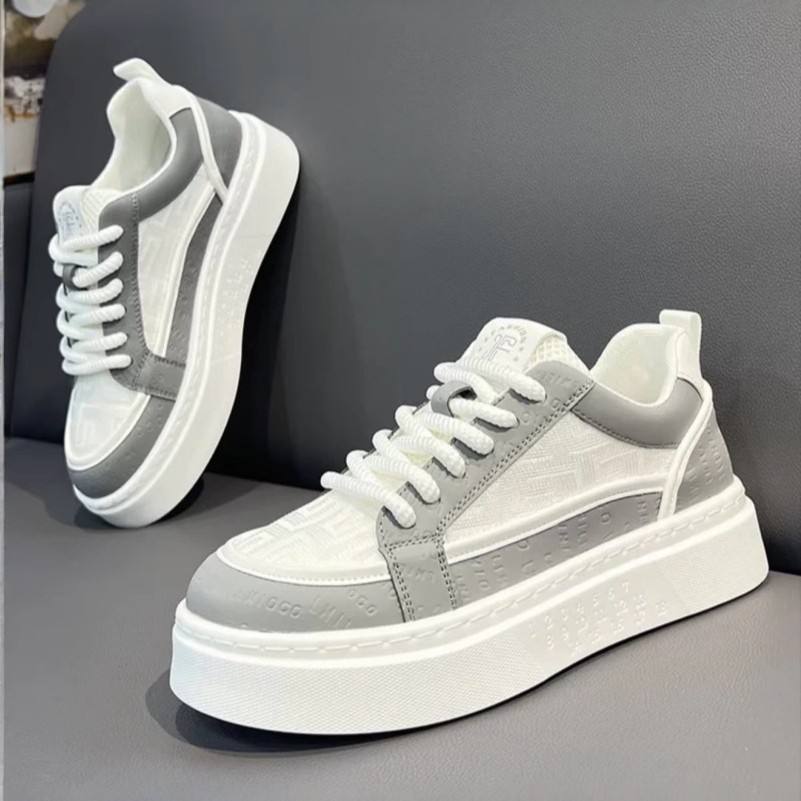 รองเท้าผ้าใบผู้ชาย รุ่นเยาวชน สำหรับฤดูร้อน ระบายอากาศได้ดี ทันสมัย สไตล์ลำลอง สีขาว ผ้าตาข่าย แบบผูกเชือก พื้นหนา กันลื่น เหมาะสำหรับกิจกรรมกลางแจ้ง