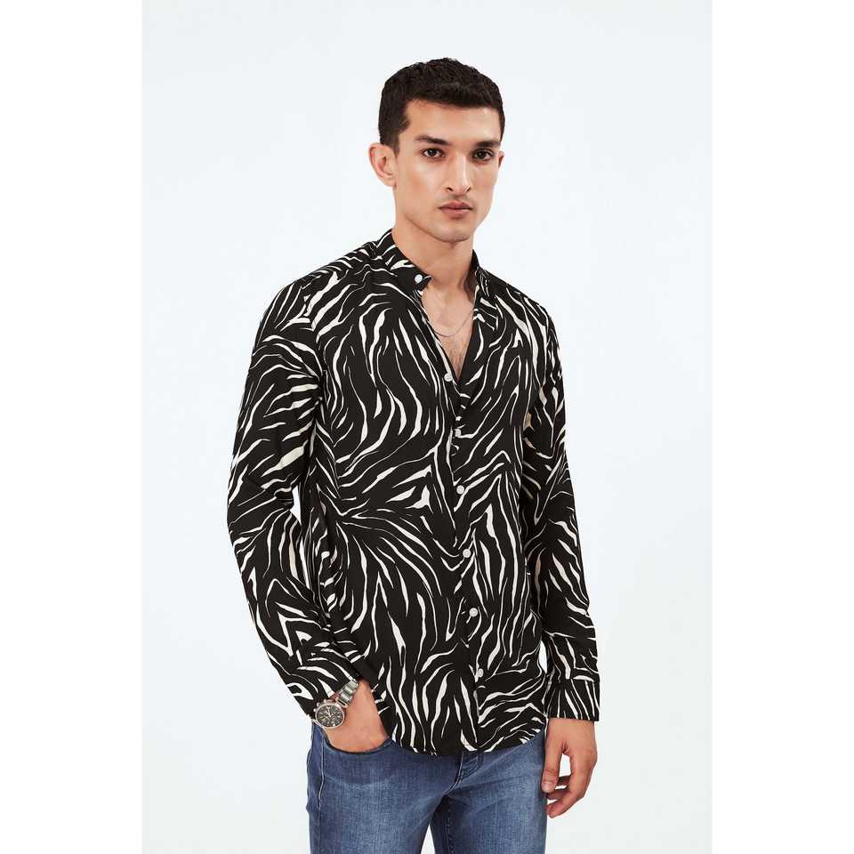 เสื้อเชิ้ตผู้ชายพิมพ์ลายม้าลายมีกระดุม