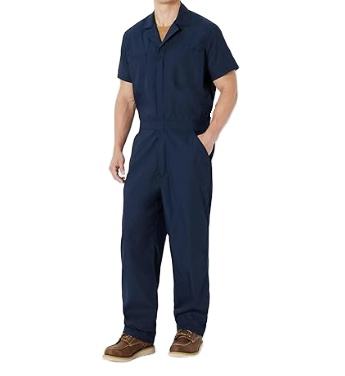 ชุดคลุมทำงานผู้ชายแบบซิปด้านหน้า ผ้าทวิลกันเปื้อนและกันยับ ชุดจั๊มสูทแบบแอคชั่นแบ็ค มีกระเป๋าหลายช่อง