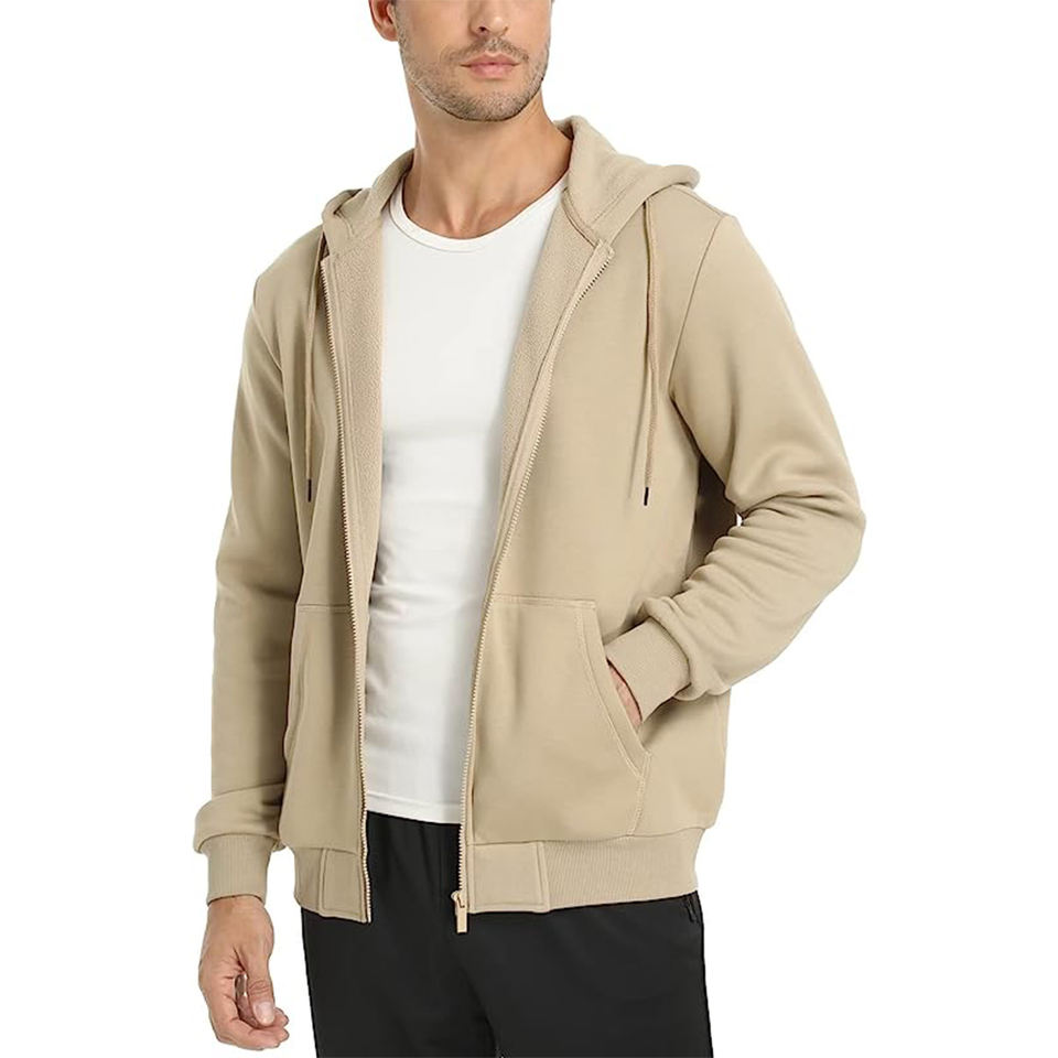 เสื้อสเวตเชิ้ตมีฮู้ดแบบมีซิปสำหรับผู้ชาย เสื้อแจ็คเก็ตมีฮู้ดบุขนแกะให้ความอบอุ่น เสื้อแจ็คเก็ตสตรีทแวร์ลำลอง