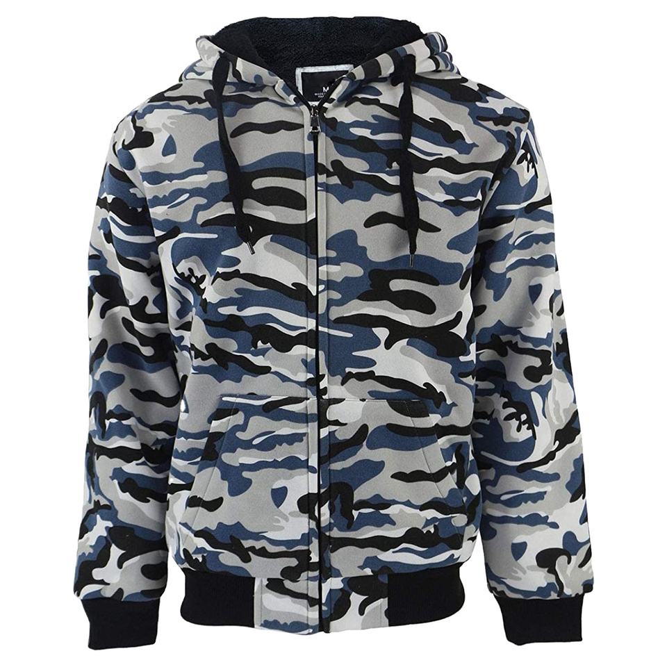 เสื้อฮู้ดซิปแบบมีลายพราง พิมพ์โลโก้ได้ ผ้าฝ้ายฟลีซคุณภาพสูง สีพื้น สำหรับผู้ชาย