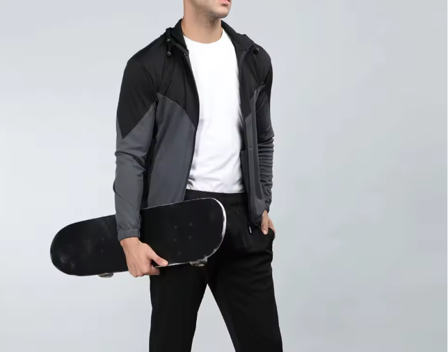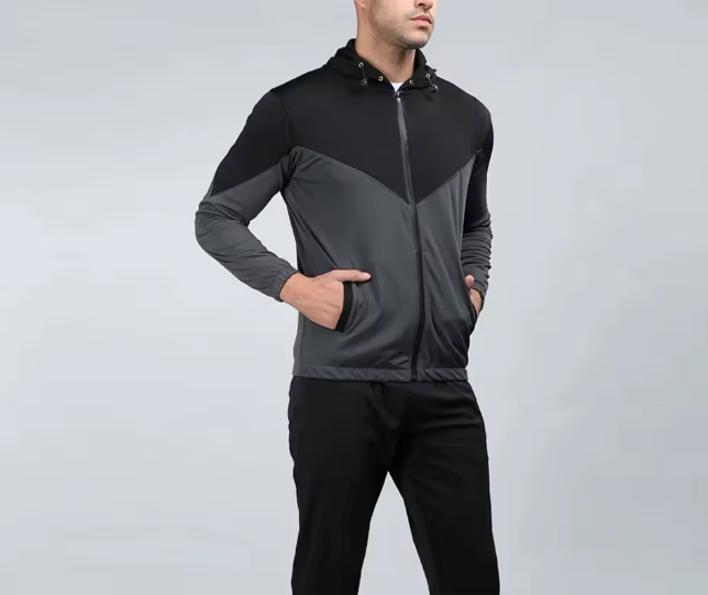 เสื้อแจ็คเก็ตแทรคสูทแบบมีซิปสำหรับผู้ชาย – เสื้อฮู้ดน้ำหนักเบาแบบ Color Block สำหรับออกกำลังกาย วิ่ง เทรนนิ่ง ชุดกีฬา พร้อมโลโก้แบบกำหนดเอง