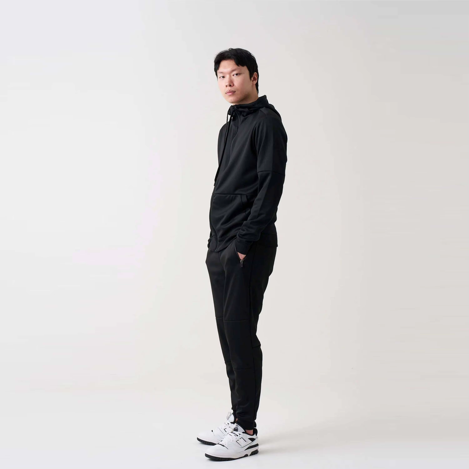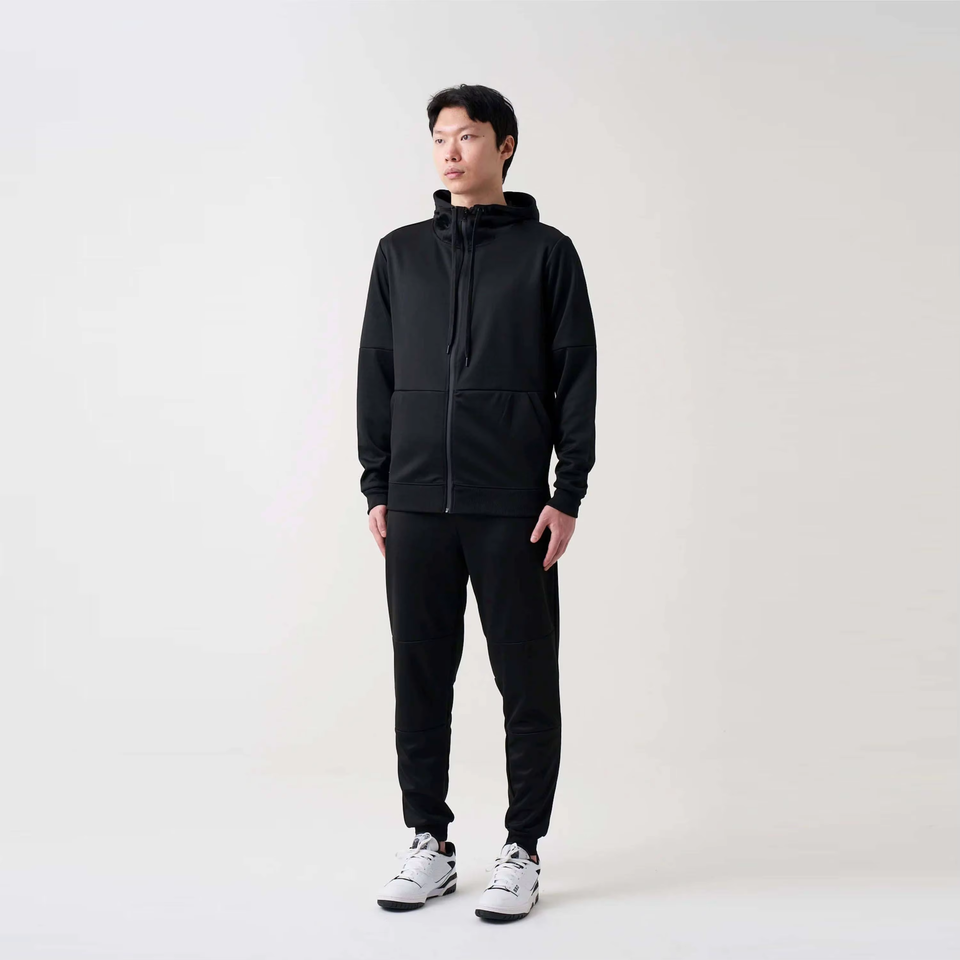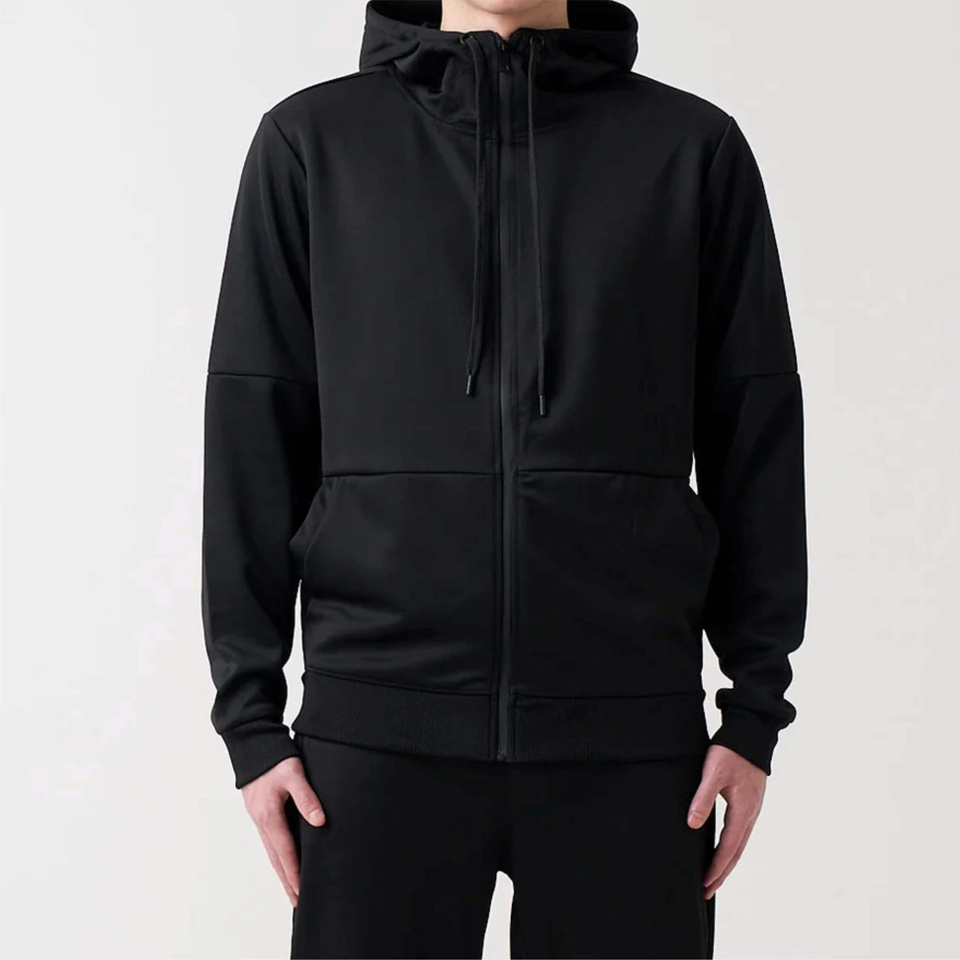 ชุดเซ็ตเสื้อฮู้ดซิปหน้าผ้าฟลีซซับในสีพื้นแบบฟอกสีสไตล์ลำลองสำหรับผู้ชาย พร้อมกางเกงกีฬาสองชิ้น ผ้าฝ้ายระบายอากาศได้ดี สวมใส่สบาย