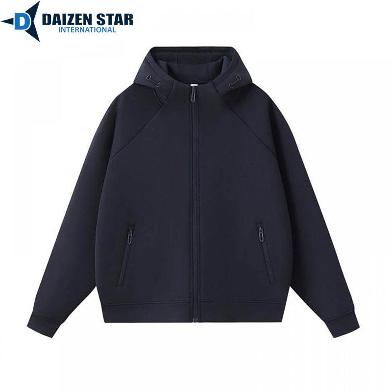 Men's Zipper Hoodies Solid Color 100% Cotton Fleece Regular Fit Winter Casual Front OEM Service 500 Grams Streetwear