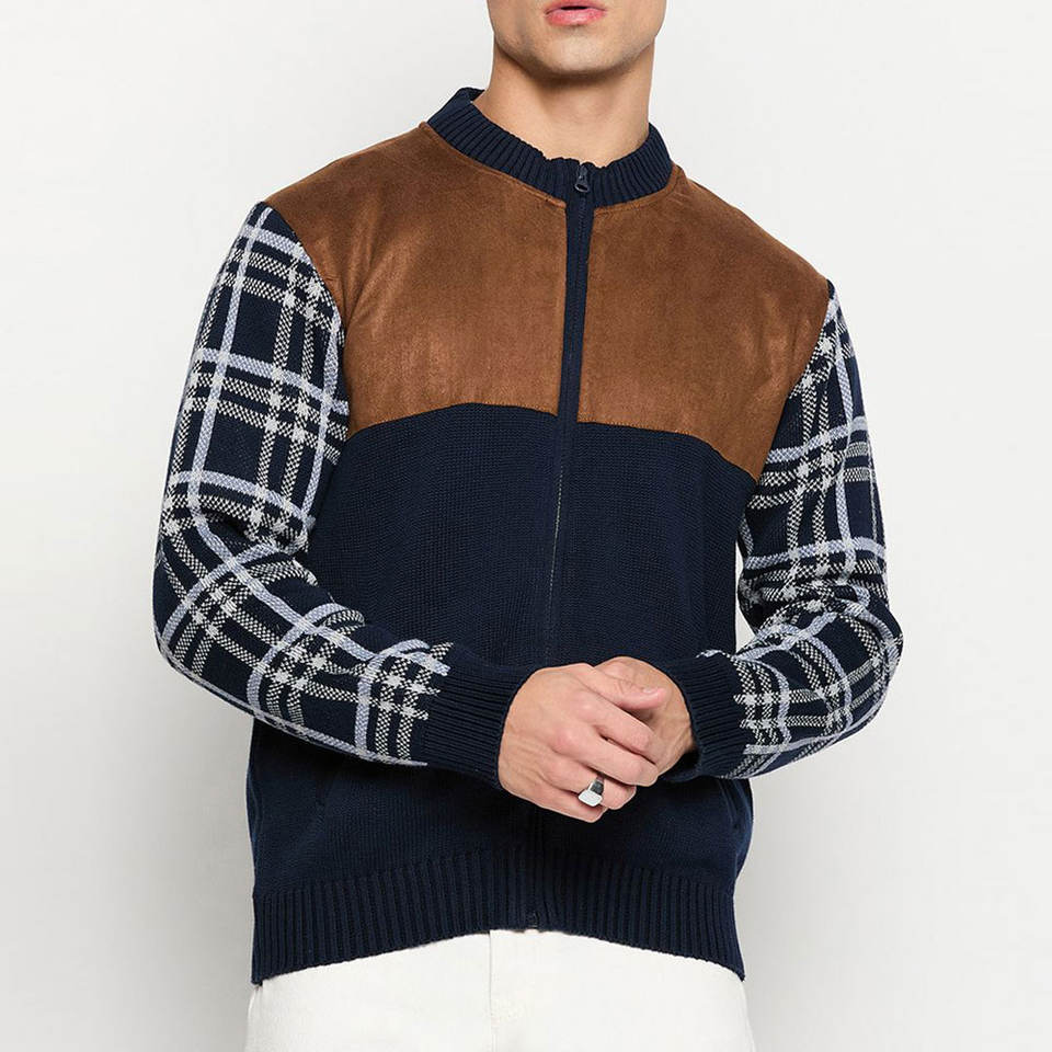 เสื้อสเวตเตอร์คอเต่าซิปผู้ชาย ตัวเลือกโลโก้ด้านหน้าปรับแต่งได้ ทรงเข้ารูป ซับในขนสัตว์ เสื้อคาร์ดิแกนถักสไตล์ไฮสตรีท