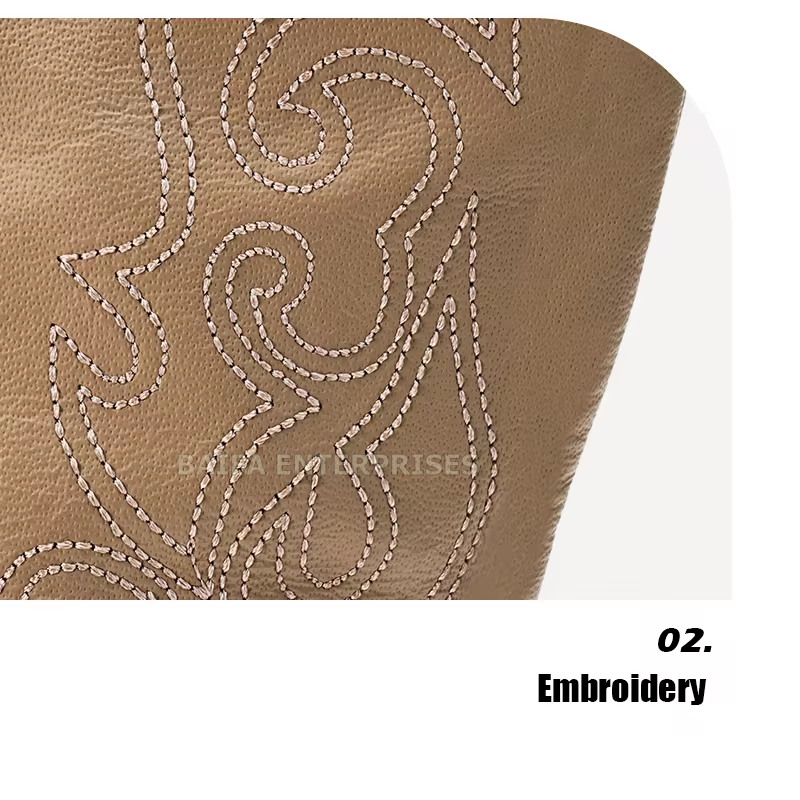 รองเท้าบูท PU คุณภาพสูงสำหรับผู้ชายและผู้หญิง ดีไซน์สั่งทำพิเศษ ส้นหนา สไตล์คาวบอย ปิดด้วยซิป สวมใส่สบาย MOQ ต่ำ