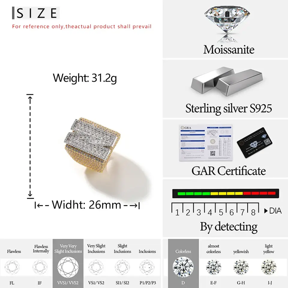 แหวนแต่งงานฮิปฮอปแบบยูนิเซ็กซ์ ประดับโมอิสซาไนต์และเพชร เงินแท้ 925 ชุบทองคำขาว รับรองโดย IGI ชุบโรเดียม พร้อมสลักโลโก้ตามสั่ง