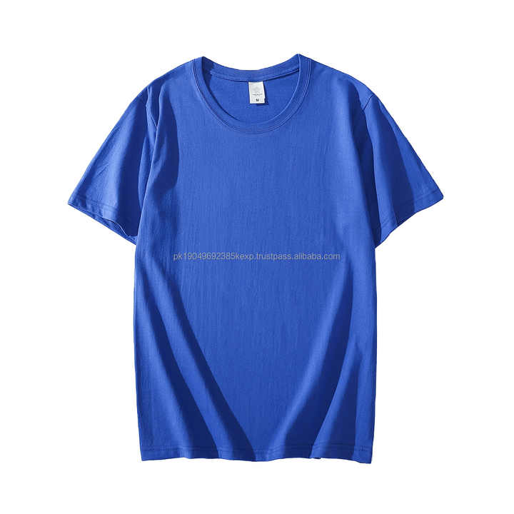 เสื้อยืดพิมพ์ลายพื้นสำหรับผู้ชายและผู้หญิงเสื้อยืดผ้าฝ้ายสีฟ้าสีดำสีขาวปรับแต่งได้100%