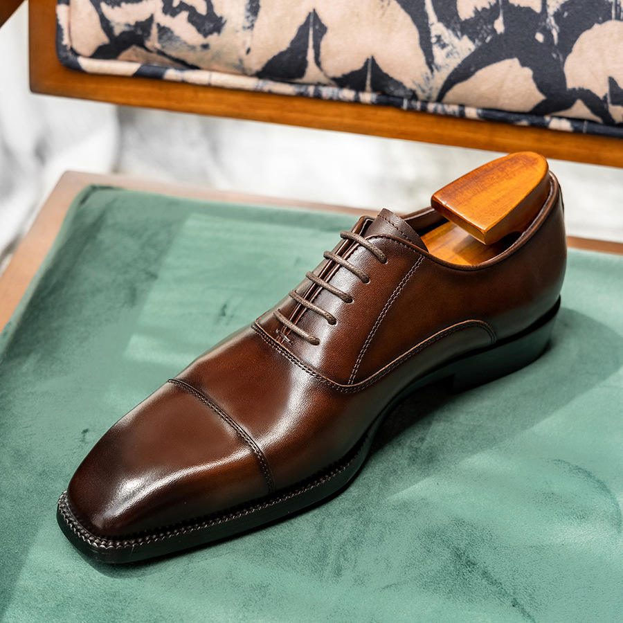 รองเท้าทางการสำหรับผู้ชาย สไตล์อังกฤษ สำหรับเจ้าบ่าวงานแต่งงาน รองเท้าอ็อกซ์ฟอร์ดสั่งตัด