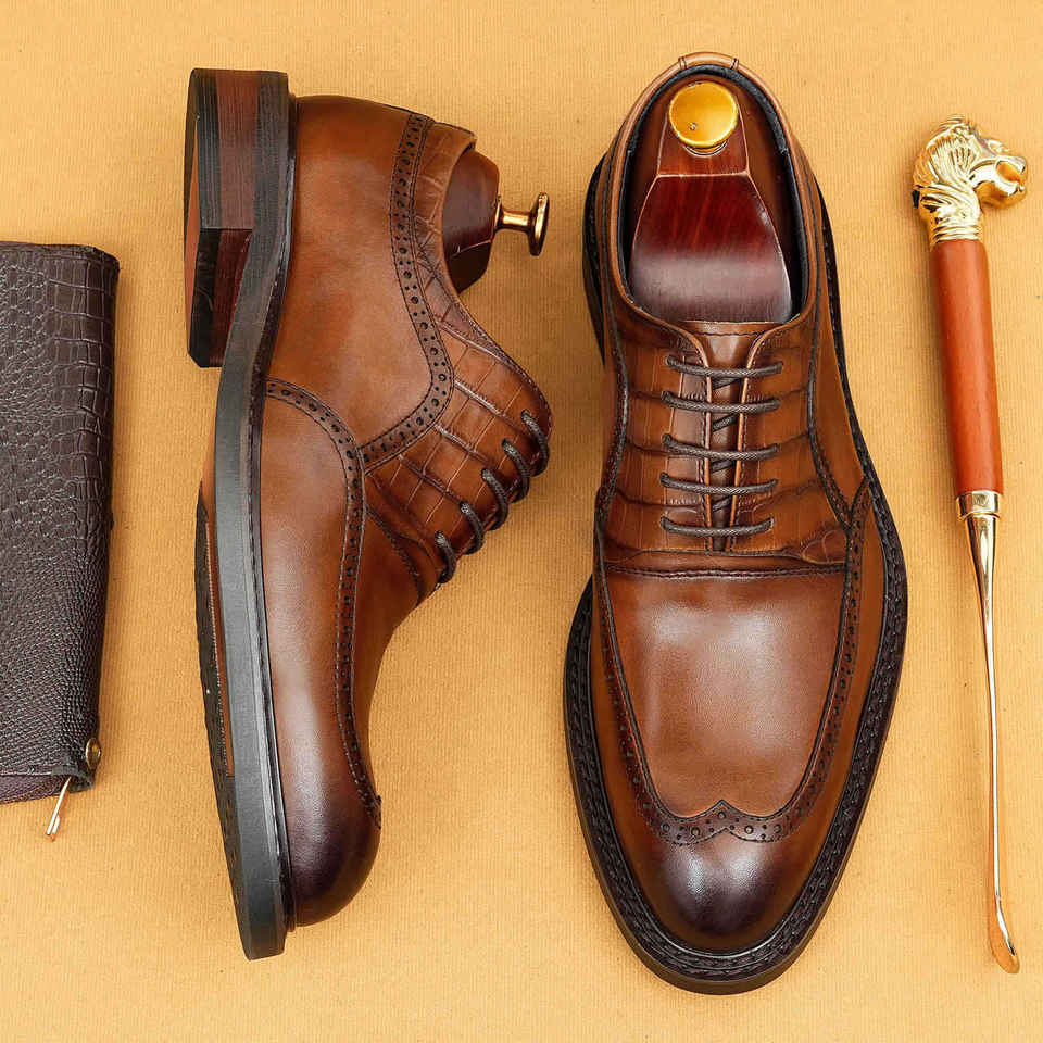 รองเท้าหนังแท้แบบใหม่สำหรับผู้ชาย, รองเท้าหนังจระเข้2026แบบทางการสลักลาย