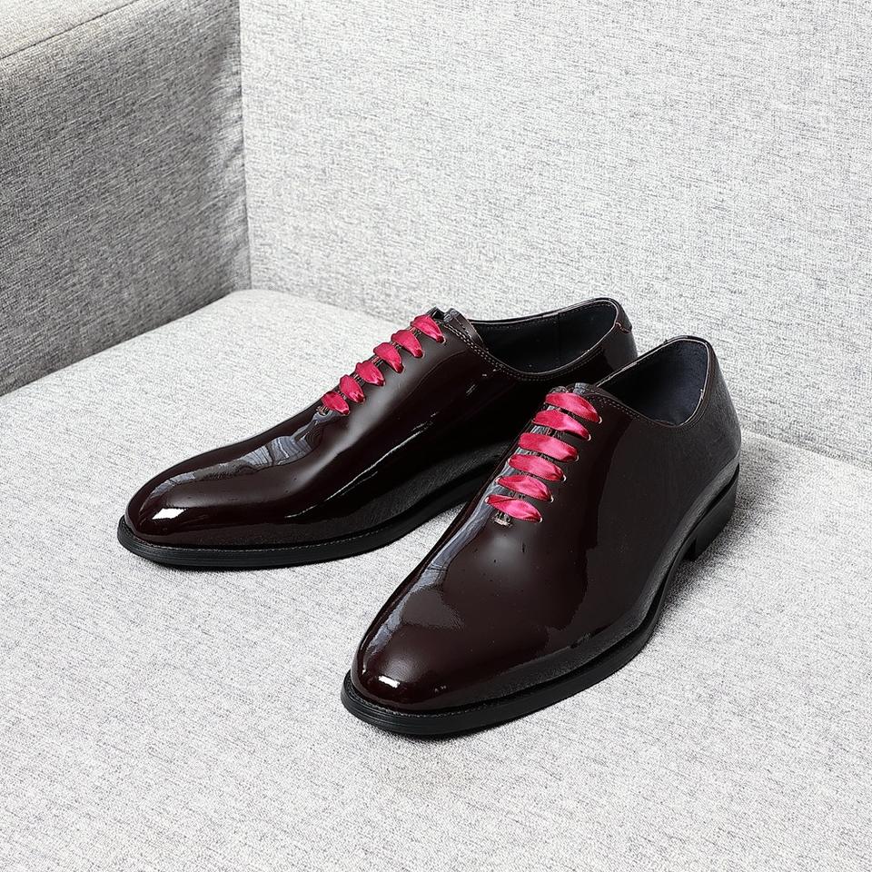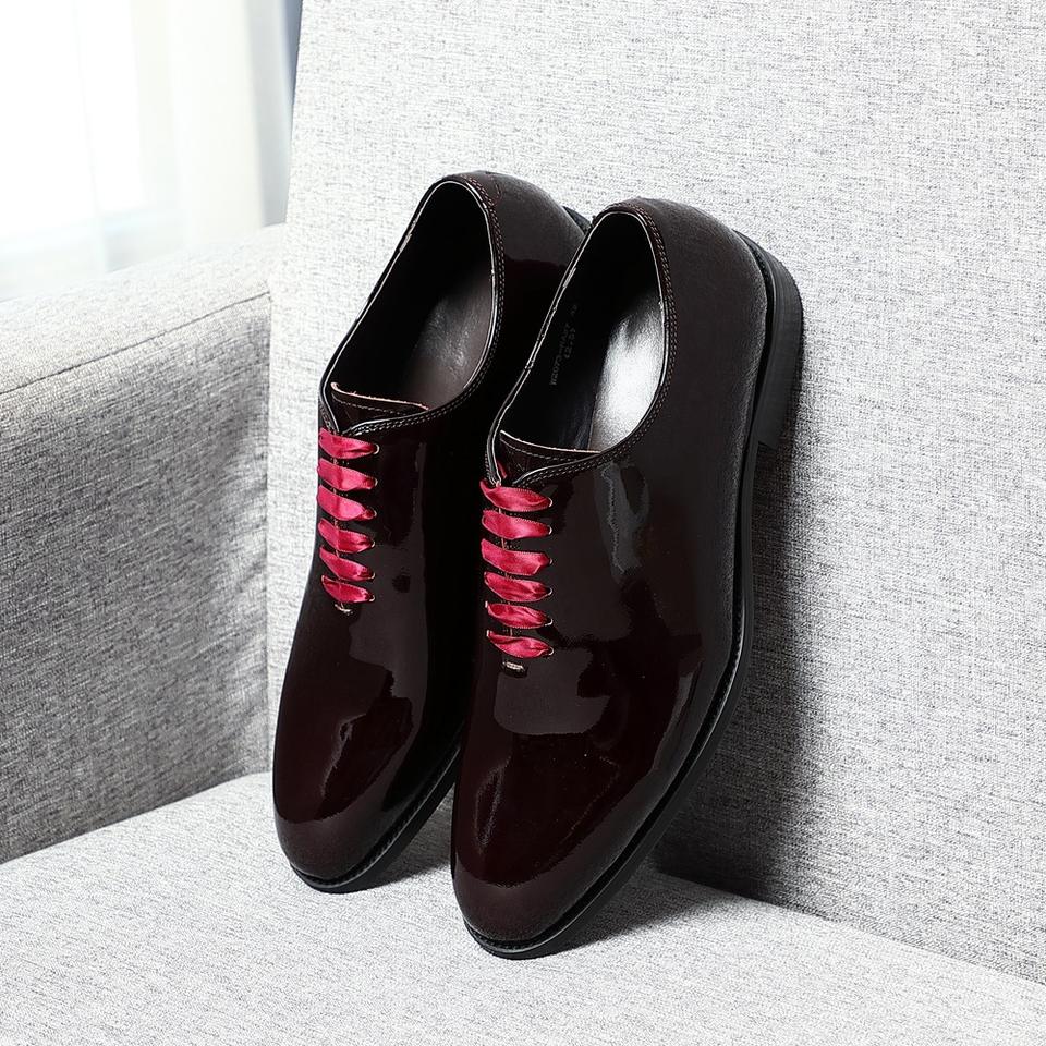 รองเท้าปาร์ตี้ผู้ชายหนังแก้วสี่เหลี่ยมแนวธุรกิจรองเท้าผูกเชือกกันลื่นทำมือระดับไฮเอนด์