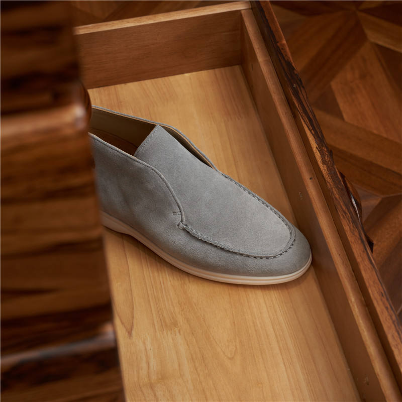 รองเท้าหุ้มข้อสูงแบบลำลองสไตล์อังกฤษสำหรับผู้ชาย ทำจากหนังกลับน้ำหนักเบา สวมใส่สบาย พื้นรองเท้านุ่ม