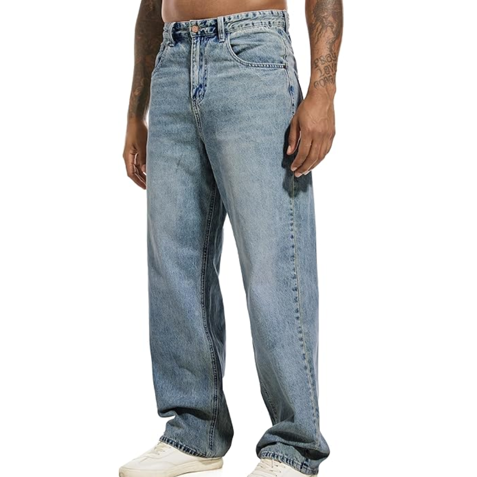 กางเกงยีนส์เดนิมยืดหยุ่นสูงสำหรับผู้ชาย คอลเลคชั่นล่าสุด ทรงหลวม สไตล์ลำลอง ทรงตรง เอวกลาง สไตล์ฮิปฮอป สตรีทแวร์ ไซส์พลัส