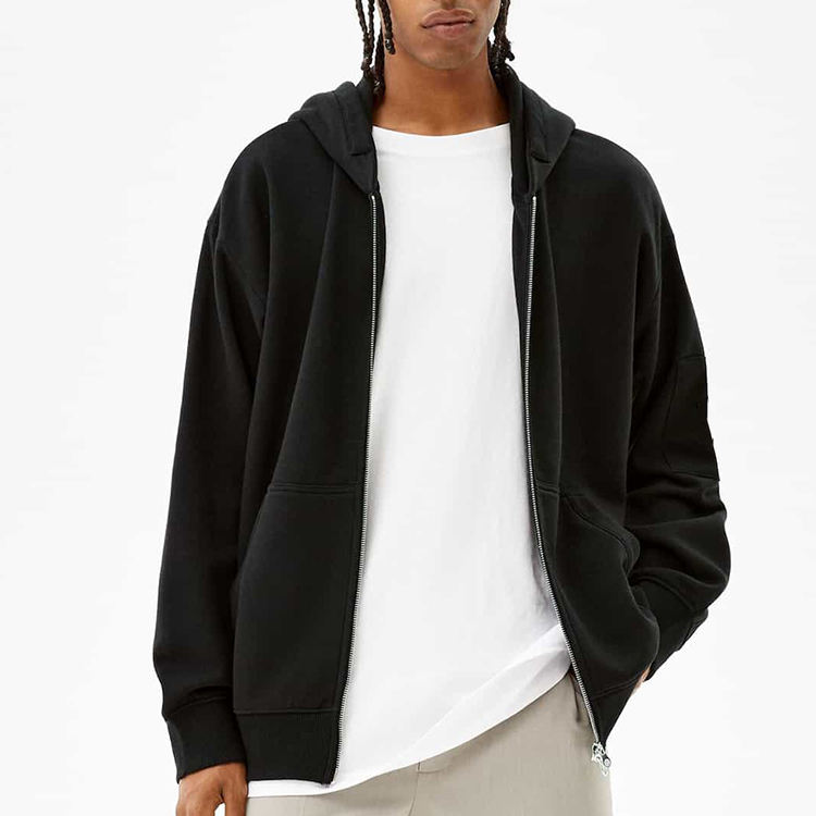 เสื้อฮู้ดผ้าฟลีซคลุมไหล่ของผู้ชายเสื้อฮู้ดแบบสวมหัวมีซิปสองชั้นผ้าฝ้าย100% แบบกำหนดเอง