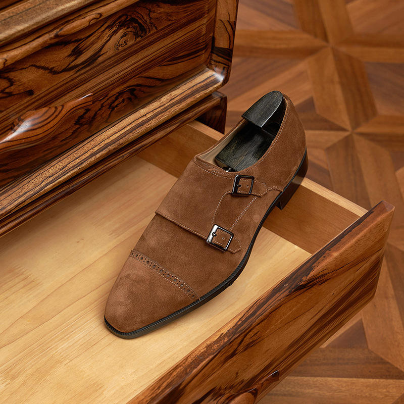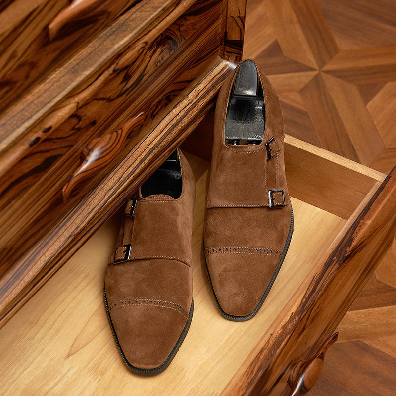 รองเท้าหนังแท้สำหรับผู้ชาย มีเชือกผูก หัวรองเท้าทรงเหลี่ยม น้ำหนักเบา กันลื่น สวมใส่สบาย ระบายอากาศได้ดี พื้นรองเท้าทำจากยางคอมโพสิต