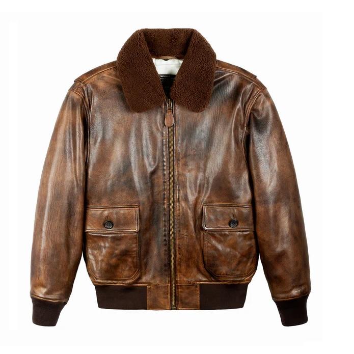 Men's leather bomber red leather pilot fur collar aviator Motorcycle Plus size Genuine leather Jacket for men Made to measure