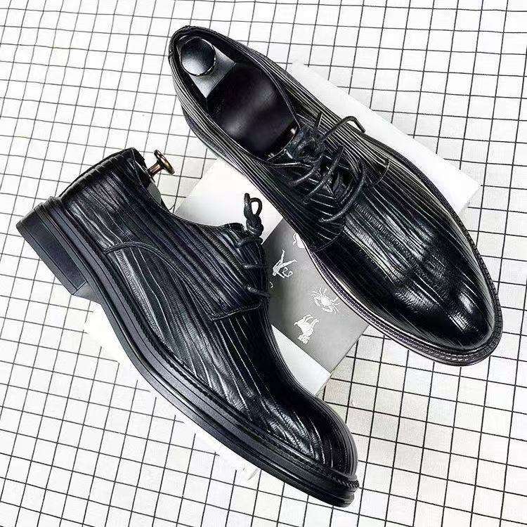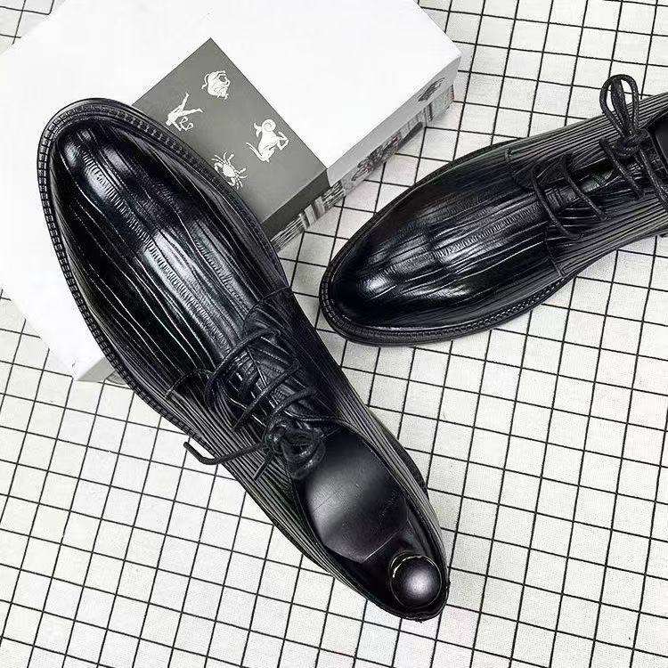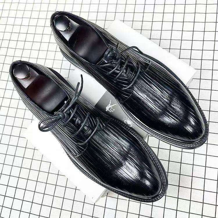 Men's leather shoes, youth Korean style, trendy British style, pointed toe, business formal black shoes