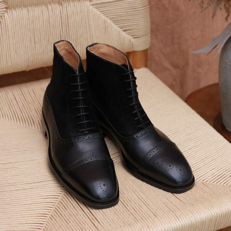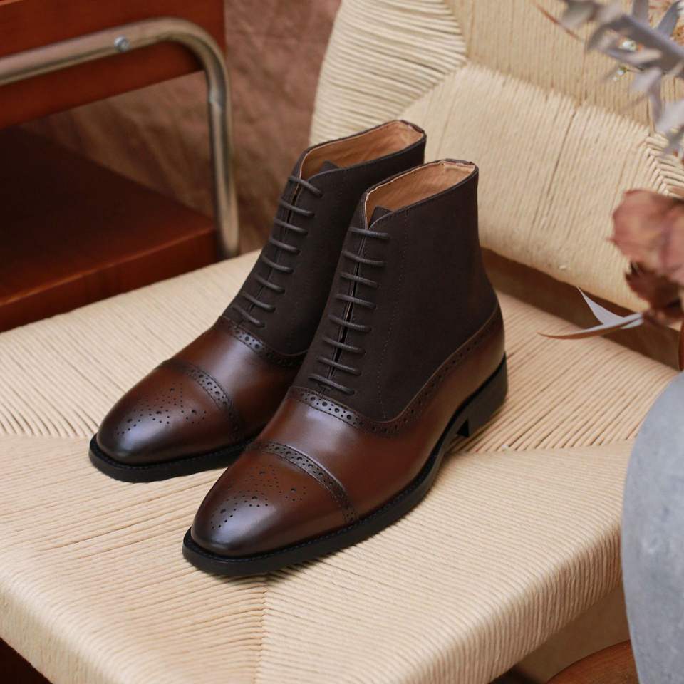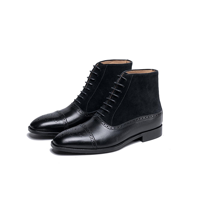 รองเท้าบูทหนังแท้ทรงอังกฤษสไตล์เรโทรสำหรับผู้ชาย รุ่นใหม่รับฤดูใบไม้ผลิ หัวแหลม พื้นหนา พร้อมรองเท้าหนังอ็อกซ์ฟอร์ดแบบหุ้มข้ออเนกประสงค์