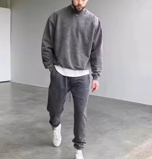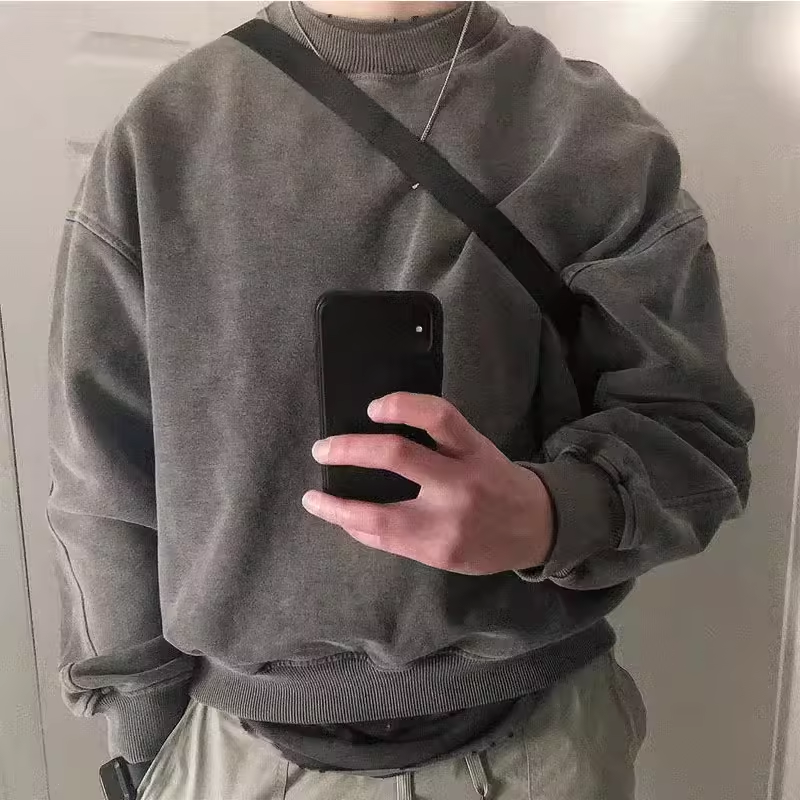 เสื้อฮู้ดผ้าฝ้าย100% บ็อกซี่โอเวอร์ไซส์สำหรับผู้ชาย500จีเอสเอ็มซักกรดแบบวินเทจ