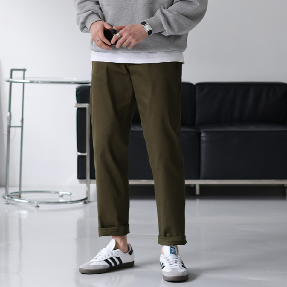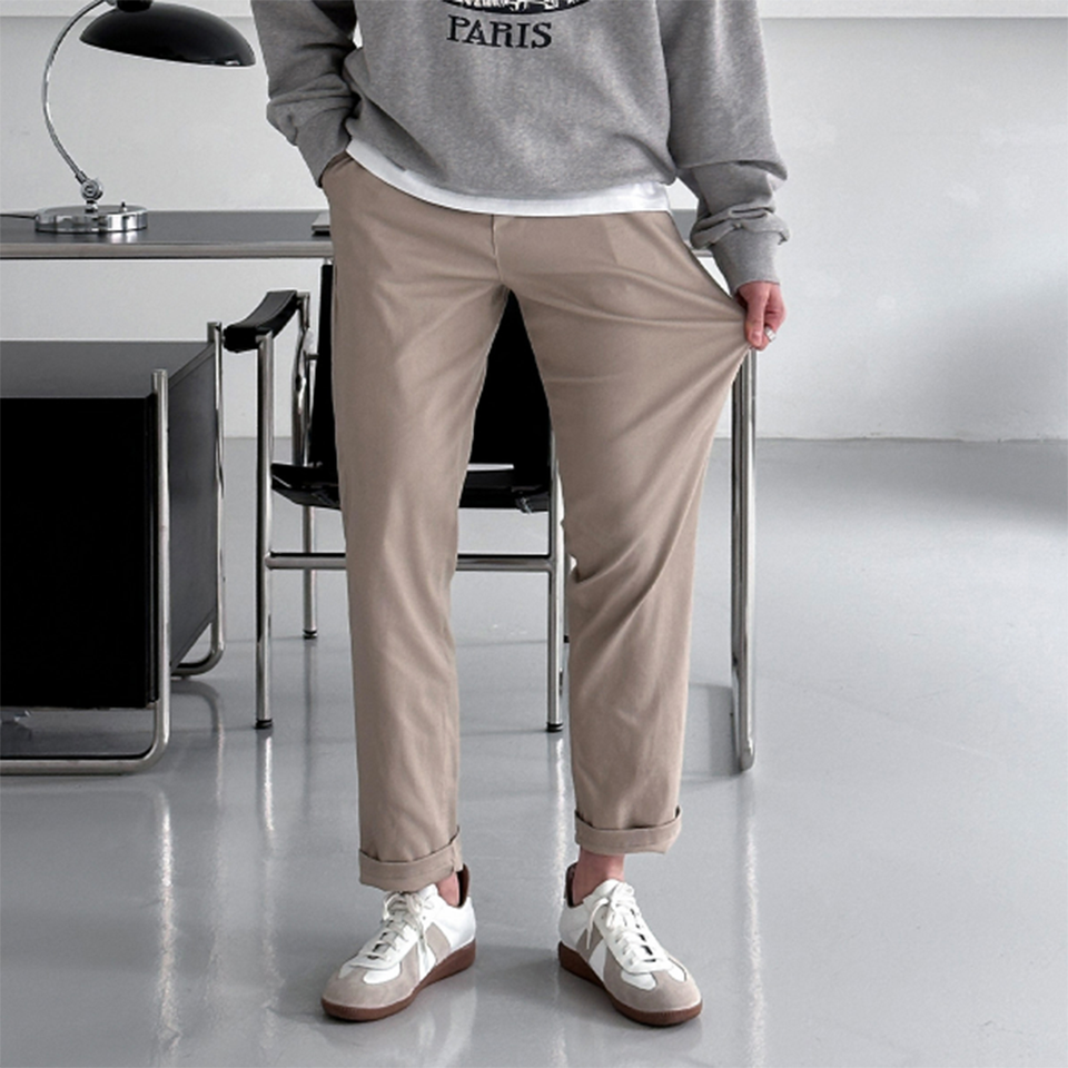 กางเกงผู้ชายสไตล์เกาหลีตรงใส่สบายกางเกงยืด4Way ผ้าฝ้ายใส่ได้ทุกวันใส่ได้ทั้งชายและหญิงมี5สี H4006