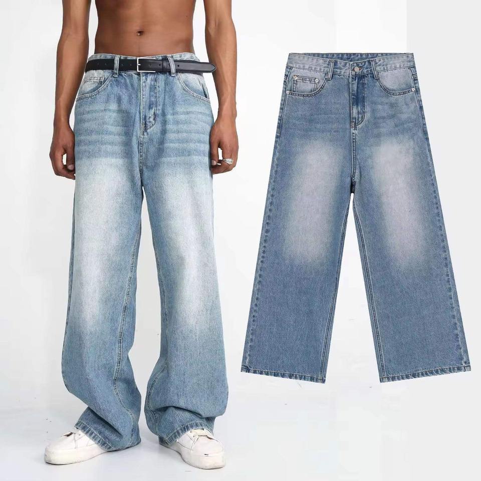 กางเกงยีนส์ขาตรงขากว้างสำหรับผู้ชายกางเกงยีนส์ทรงหลวมสไตล์ใหม่ออกแบบได้ตามต้องการ