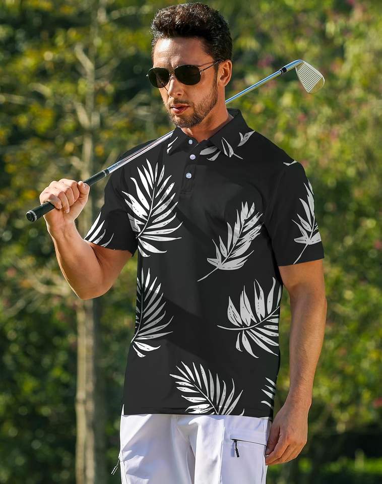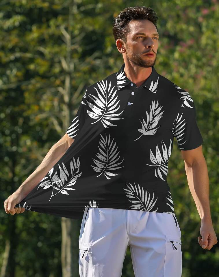 เสื้อโปโลผู้ชายทำจากผ้าแห้งเร็วเสื้อโปโลแขนสั้นพิมพ์ลายลำลองดีไซน์แบบยืดได้