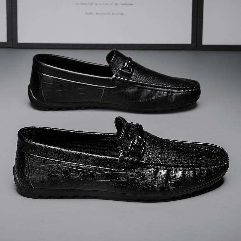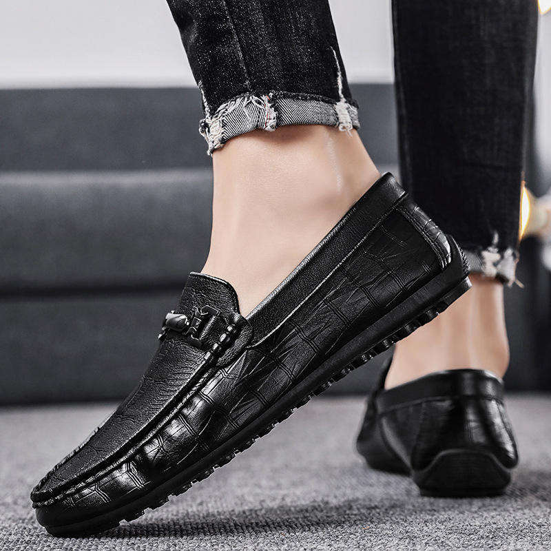 รองเท้าผู้ชายสไตล์อิตาลีสีดำ รุ่นใหม่ปี 2025 รองเท้าลำลองหนังแบบสวม พื้นนุ่ม สไตล์คนขับรถ ทันสมัย
