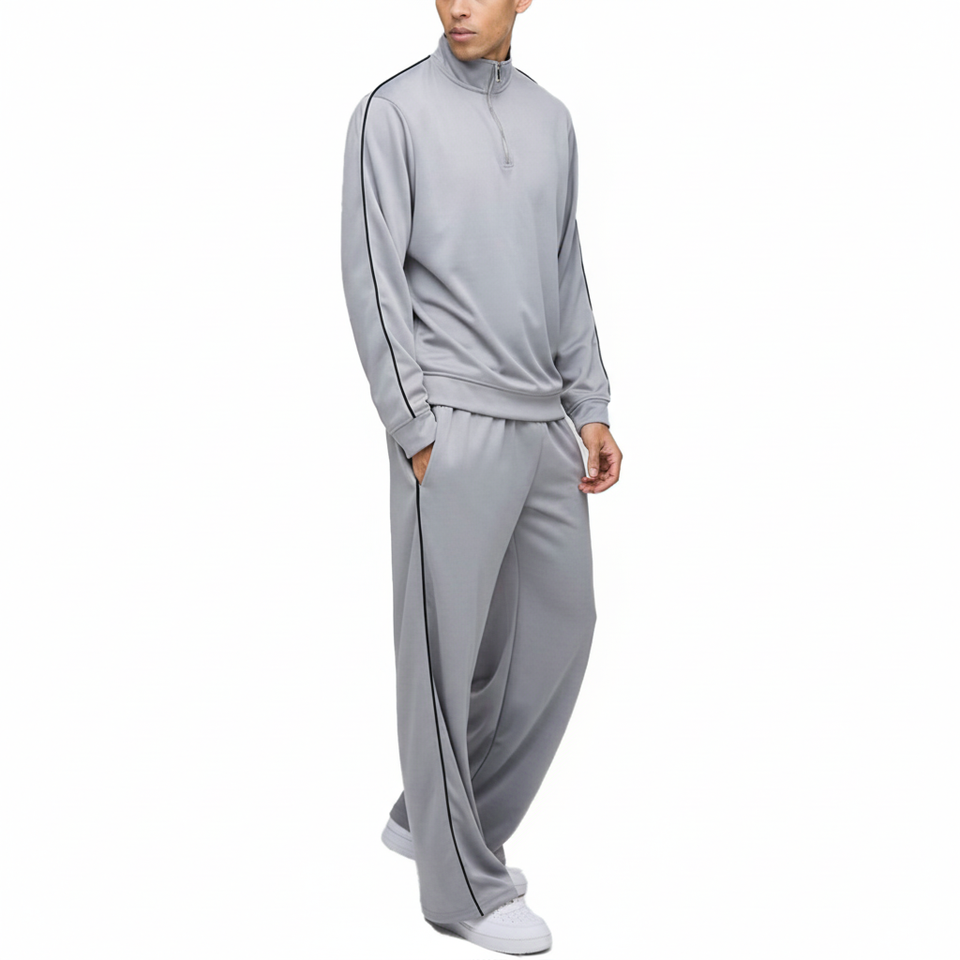 เสื้อแจ็กเก็ตสีเทาเงินสำหรับผู้ชาย, ชุดวอร์มทรงหลวมซิปครึ่งตัว