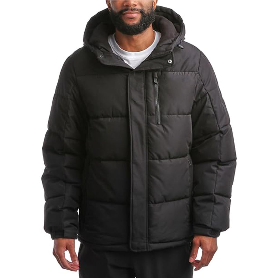 แจ็กเก็ตขนเป็ดไนลอนผู้ชายใส่เล่นสกีมีฮู้ดคอปกซิปซักได้สีดำสไตล์ไฮสตรีทฤดูหนาว