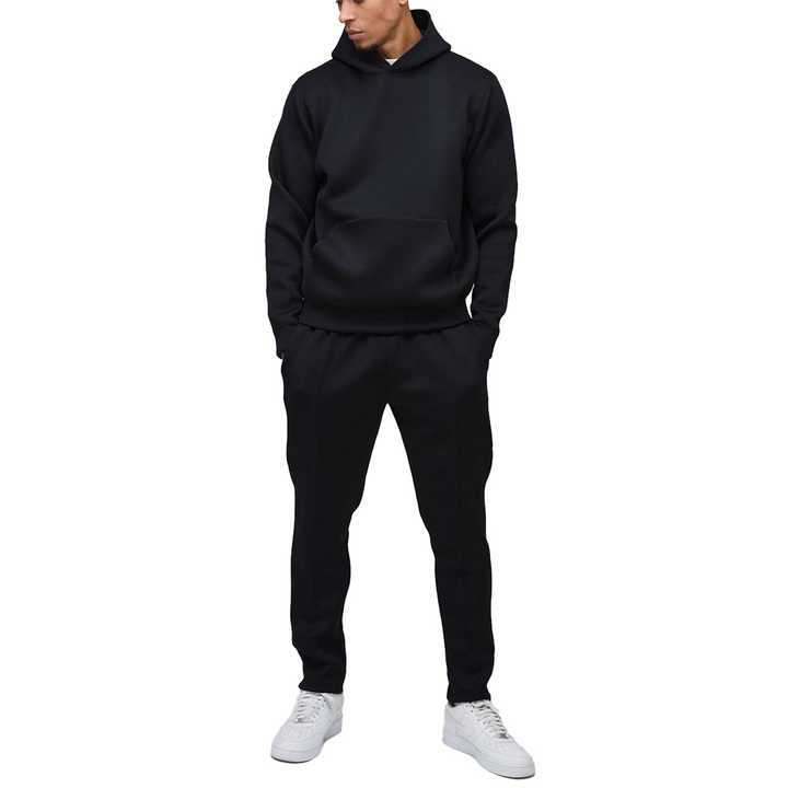 ชุดวอร์มผู้ชายแบบสลิมฟิต เสื้อฮู้ดดี้สีดำ 2 ชิ้น ชุดออกกำลังกายสำหรับผู้ชาย