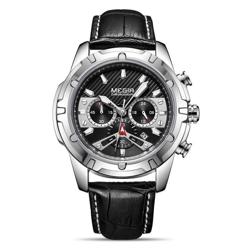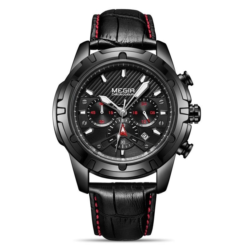 นาฬิกาสปอร์ตสำหรับผู้ชาย, นาฬิกาหนังแท้กันน้ำเรืองแสงนาฬิกาข้อมือควอตซ์โครโนกราฟอเนกประสงค์