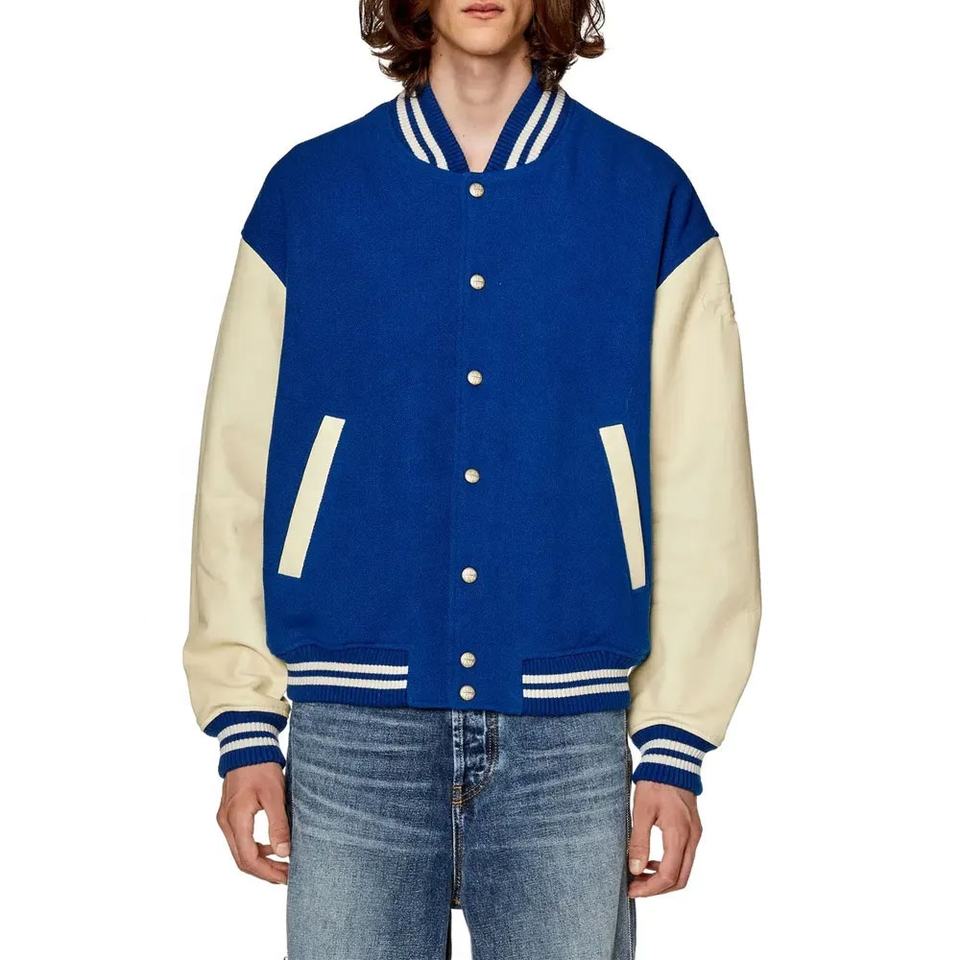 แจ็กเก็ตมีโลโก้ที่กำหนดเองสำหรับผู้ชายเสื้อแจ็คเก็ตหนังแขนเสื้อสีทึบที่แตกต่างกันออกแบบได้ตามต้องการ