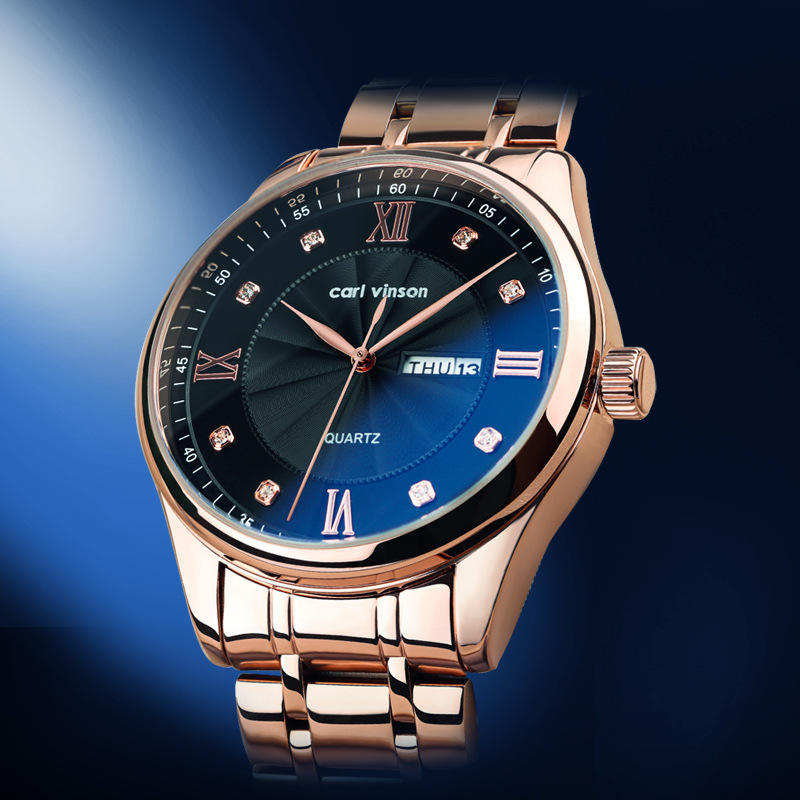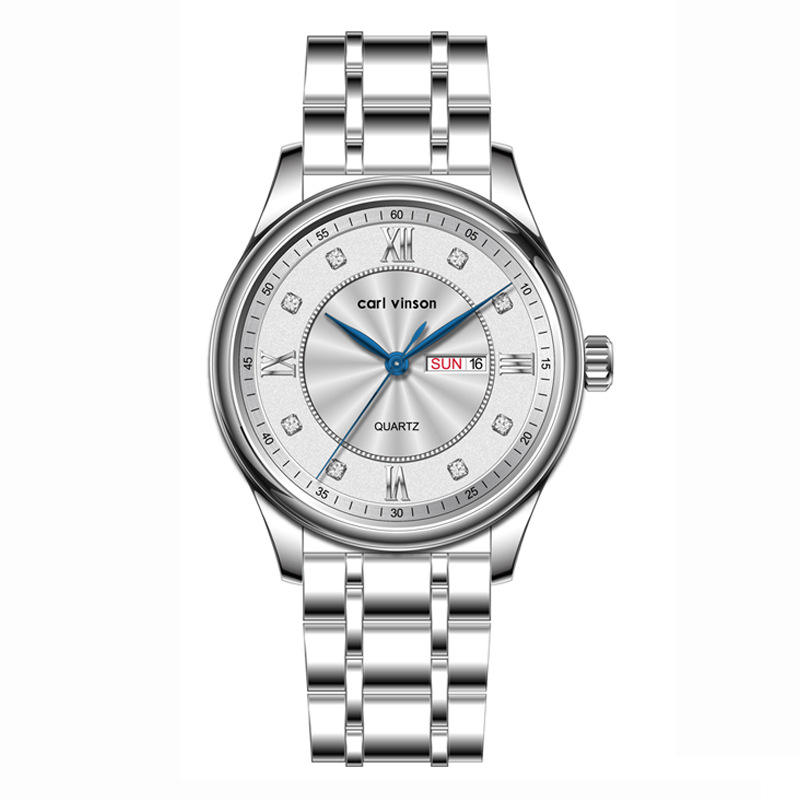 นาฬิกาผู้ชายเพชรชุดนาฬิกาควอตซ์ปฏิทินคู่ทันสมัยนาฬิกาข้อมือธุรกิจกันน้ำ