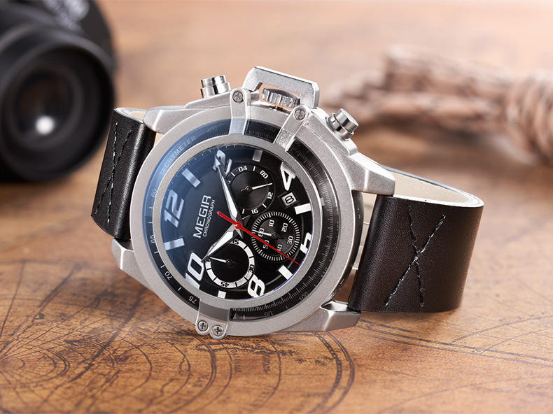 นาฬิกาผู้ชายโครโนกราฟอเนกประสงค์นาฬิกากีฬานาฬิกาควอตซ์กันน้ำทันสมัย