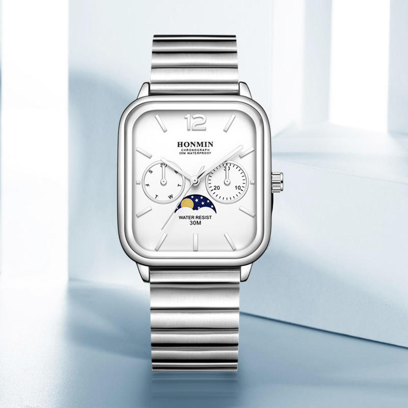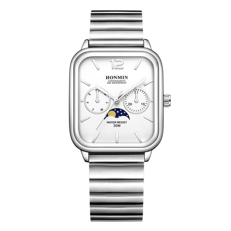 นาฬิกาผู้ชายอินเทรนด์และเรียบง่าย Moon Phase นาฬิกาข้อมือควอตซ์กันน้ำขายส่ง