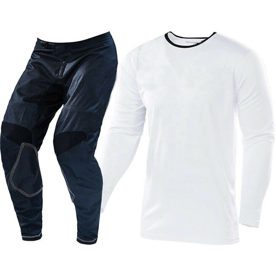 ชุดแข่งรถมอเตอร์ครอสสำหรับผู้ใหญ่ ไซส์พลัส ระบายอากาศได้ดี แบบยูนิเซ็กซ์ - เสื้อเจอร์ซีย์และกางเกงสีดำและสีขาว
