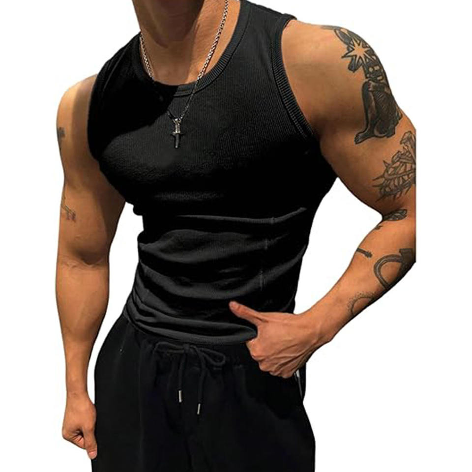 เสื้อกล้ามออกกำลังกายแขนกุดสำหรับผู้ชาย, แห้งเร็วระบายอากาศได้ดีชุดออกกำลังกายฟิตเนสสำหรับวิ่งและฝึกซ้อม